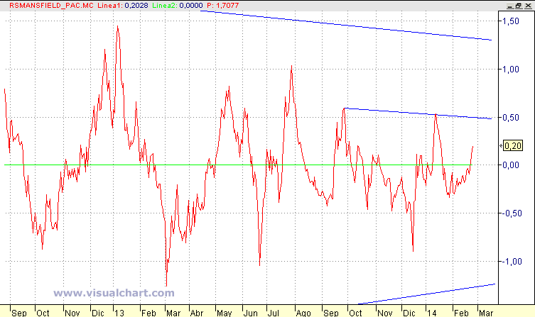 Una vez ajustado al gráfico al dividendo que repartió el pasado  lunes, la zona clave horizontal de soporte en gráfico mensual se  encontraría en torno a los 3,76 Euros. Y la proyección teórica de la  bandera sobre los 5,50. El valor habría tenido dos impulsos y, al menos,  le quedaría otro mayor, por lo que no descartaría una proyección  superior; esto es, la proyección del canal superado al alza o la  proyección del triángulo rectángulo.